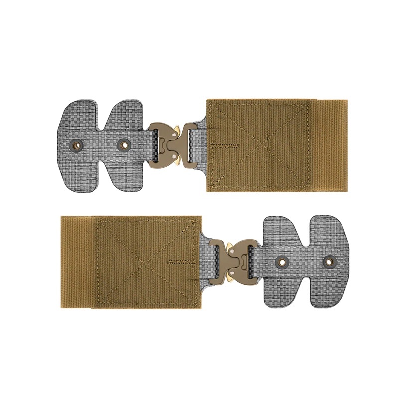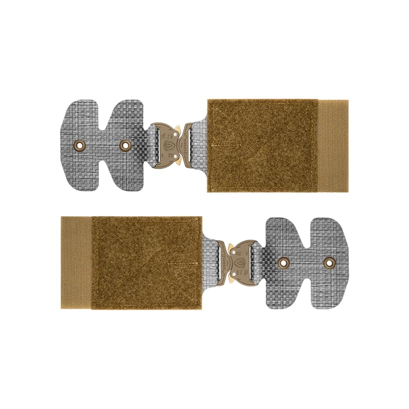 Набір Cobra Buckle Kit перетворює переднє кріплення Velcro® на камербанді, у зручну систему швидкого скидання. Фіксується між передньою частиною камербанда та фронтальними підсумками плитника. Це дозволяє користувачеві залишати передню панель опущеною та зафіксованою, без необхідності підіймати її для надягання чи зняття бронежилета. Установка набору не вимагає жодних змін у конструкції, легко монтується та демонтується.