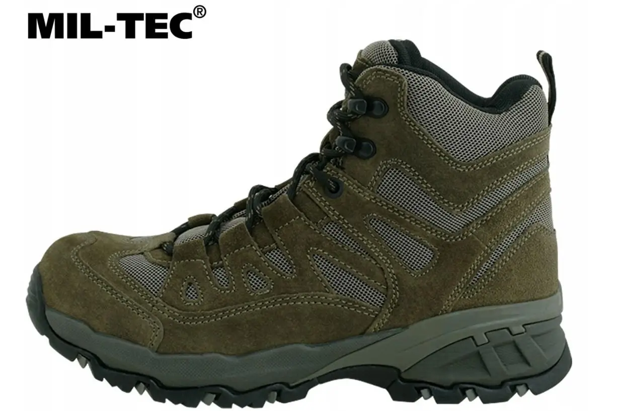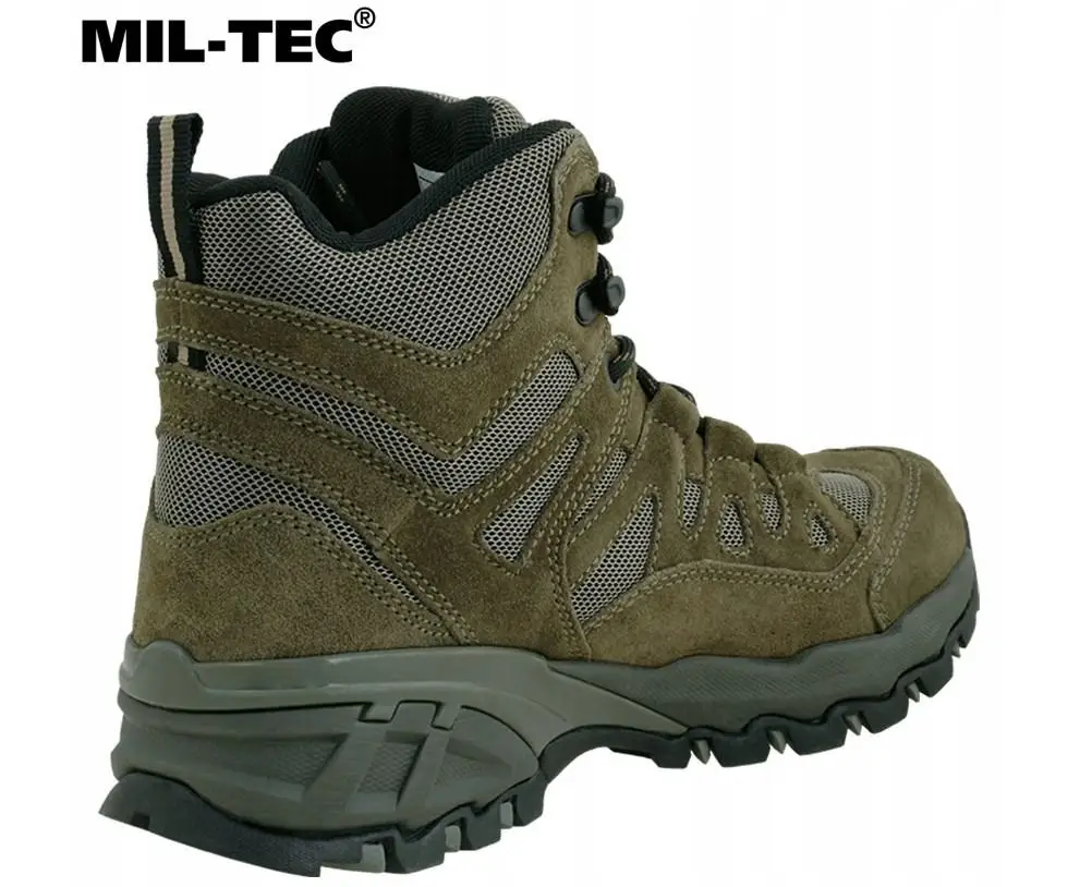 Черевики MIL-Tec Trooper Squad Stiefel 5 Inch, Olive від німецького бренду Mil-Tec характеризуються високою європейською якістю та доступною ціною. Верх виконаний з натуральної м’якої замші зі вставками із сітчастого поліестеру. Така комбінація матеріалів дозволяє максимально полегшити взуття, одночасно дозволяючи нозі «дихати».